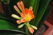 Few tropical flowering plants are as recognized as the Anthurium scherzerianum (shown above). Even if you didn't know its name, you've seen this brightly colored plant at florist's shops. Originally from Costa Rica, Flamingo Flower is now popularly grown in Hawaii. Fortunately for us, it's adaptable as a houseplant. Display it among other tropical plants -- or on its own. Those large, waxy, long-lasting spathes topped with a curly, orange spadix are sure to get attention and many compliments.